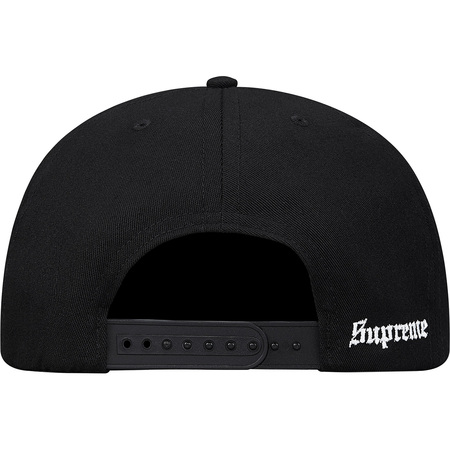 Cotton blend twill 5-panel hat with snap closure. Patch on front with embroidered logo on back.
