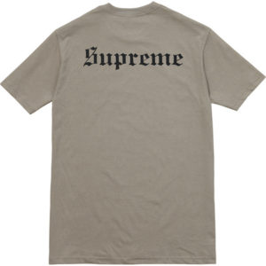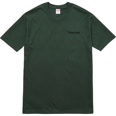 All cotton classic Supreme t-shirt with printed logo on front left chest and printed graphic on back.