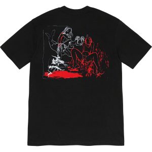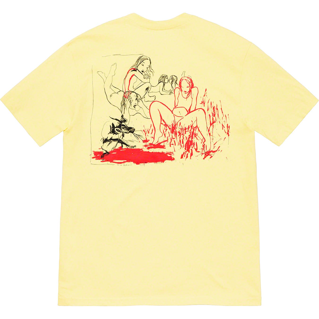 All cotton classic Supreme t-shirt with printed logo on front and printed graphic on back. Original artwork by Rita Ackermann.