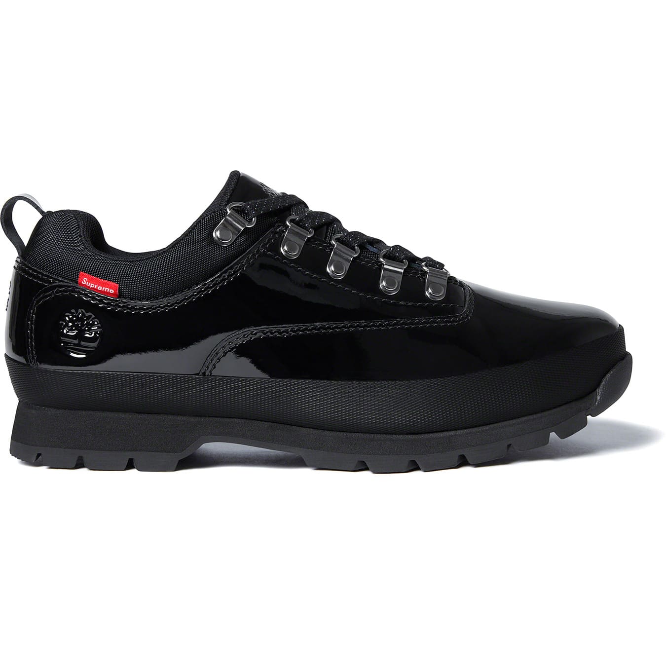 Patent leather upper with nylon canvas collar and recycled rubber outsoles. Debossed Timberland® logo at heel and tongue with logo tab at side. Set of reflective laces included. Made exclusively for Supreme.