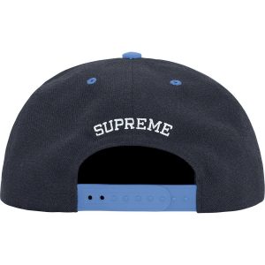 Wool blend 5-Panel hat with snap closure. Embroidered logos on front and back.