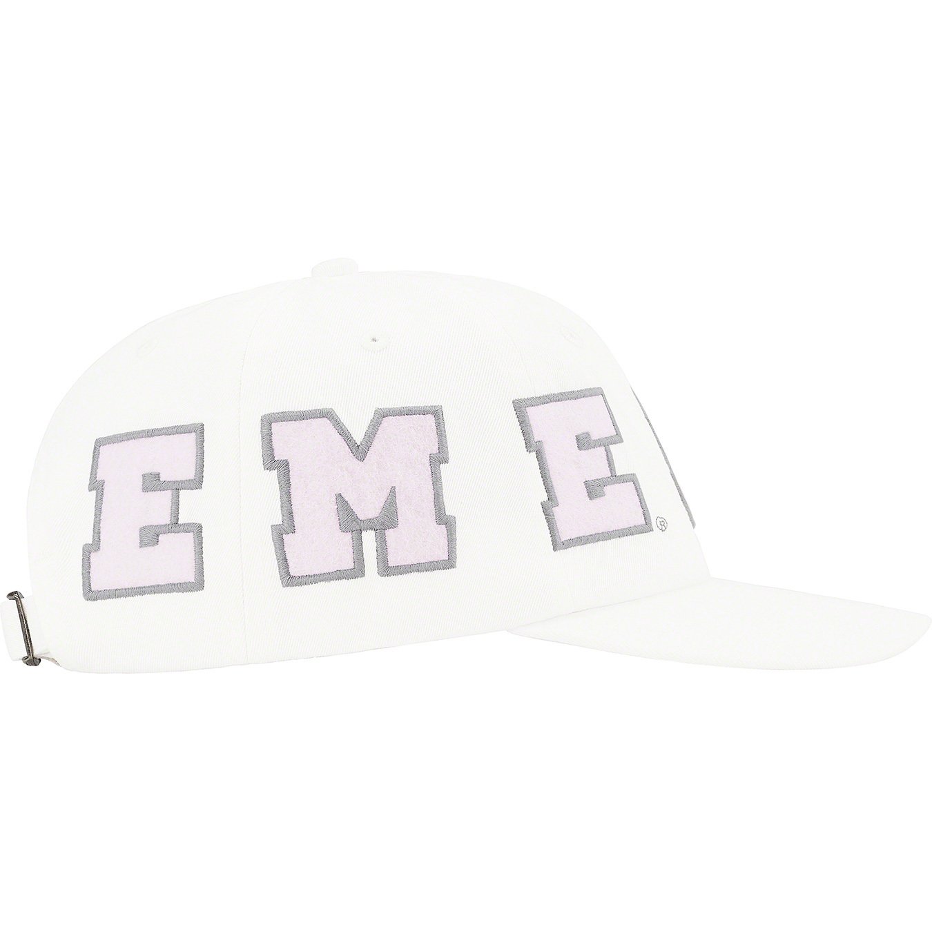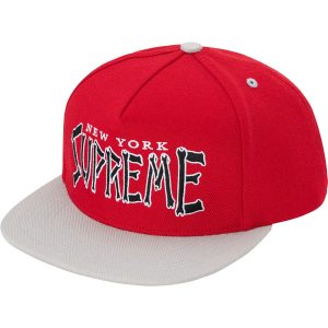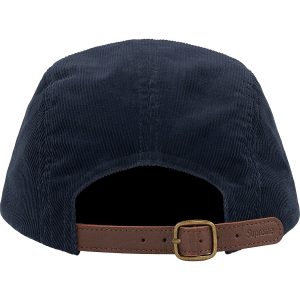 All cotton corduroy Supreme camp cap with custom debossed leather strap closure.