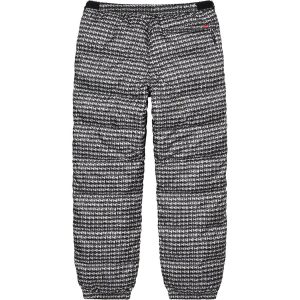 Water resistant, breathable nylon with 700-Fill down insulation and printed pattern. On seam zip hand pockets and single back zip pocket. Elastic cuffs and waistband with interior elastic shockcord and velcro tab adjusters. Logo patches on thigh and embroidered graphic at waist. Packable construction into back pocket. Made exclusively for Supreme.