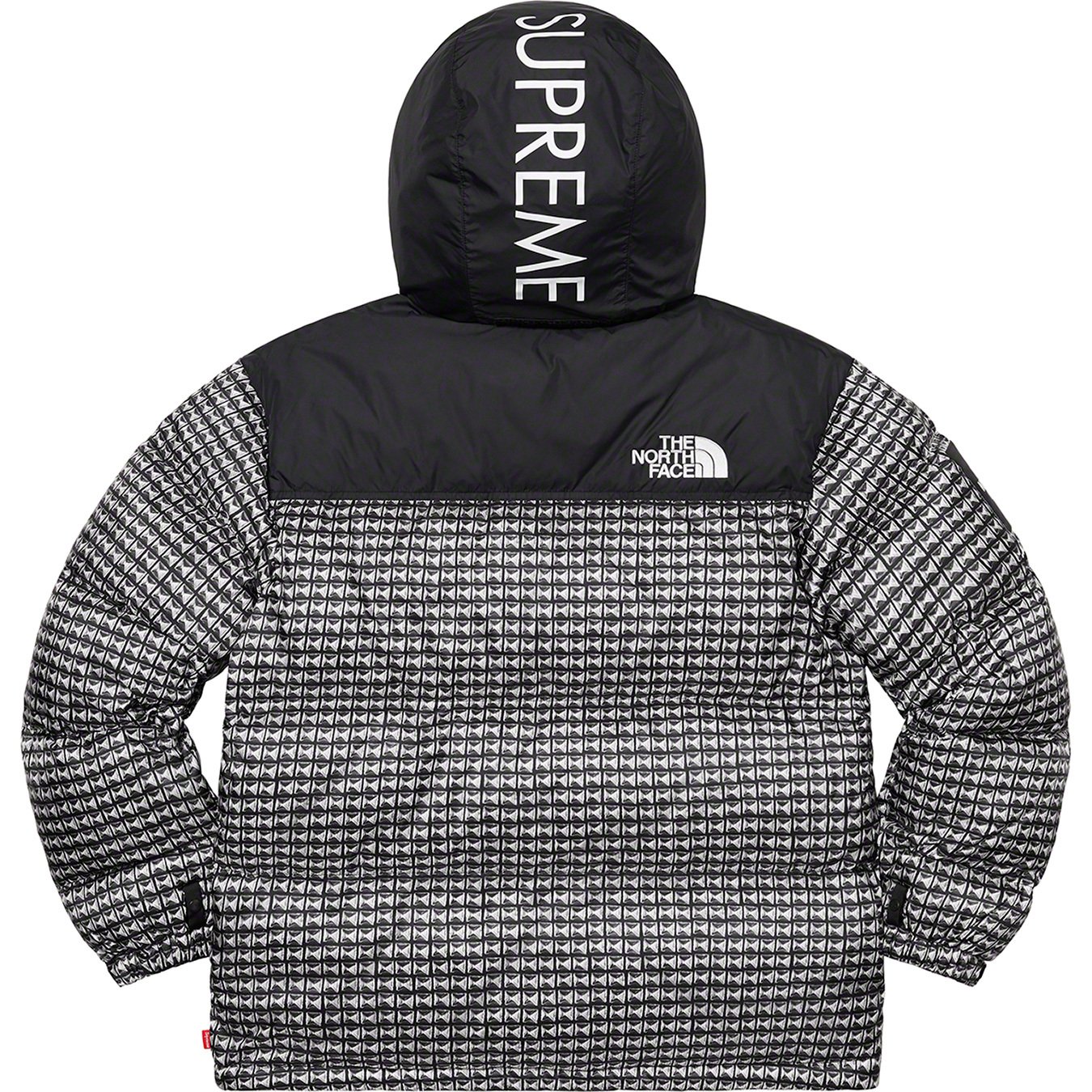 Water resistant, breathable nylon with 700-Fill down insulation and printed pattern. Full zip closure with zip hand pockets at lower front and interior zip pocket. Packable hood with interior elastic shockcord and printed logo. Interior elastic shockcord at hem and embroidered logos on chest and back shoulder. Packable construction into left hand pocket. Made exclusively for Supreme.