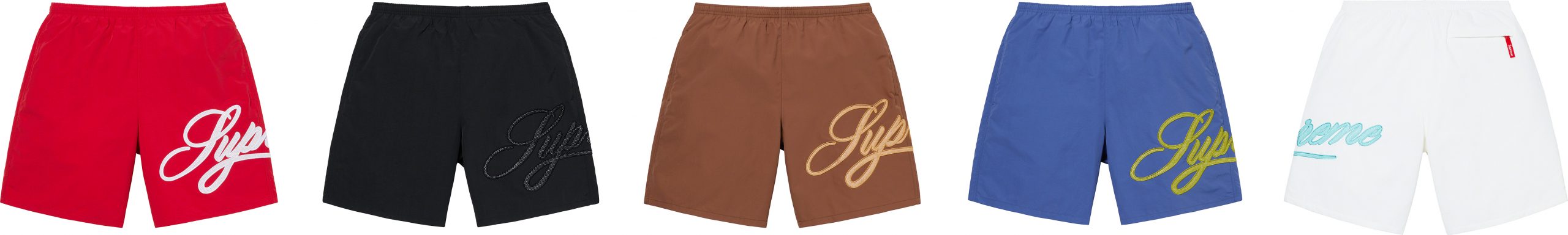 シュプリームの「スクリプトロゴ」が左足に入った、ウォーターショーツ(水着)