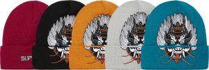 獅子の姿をした悪魔が描かれたビーニーキャップ。