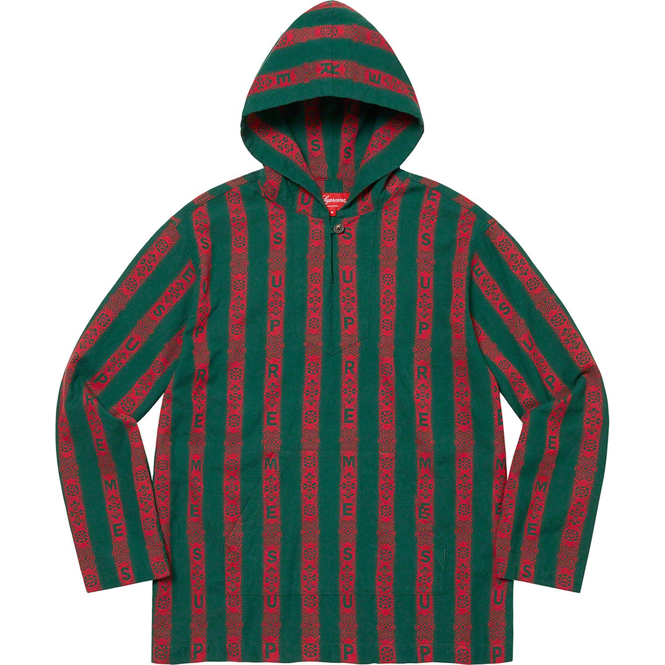 ざっくりとした織りの素材感が特徴のメキシコ発祥のバハシャツ(通称メキシカンパーカ)、ストライプ柄の縦軸にシュプリームロゴを織り込んだデザイン。