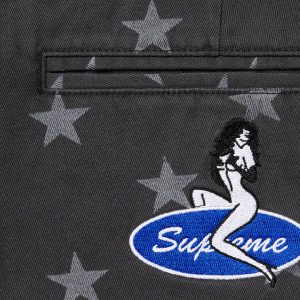 ポケットにピンナップガールを刺繍した定番のチノパン。今季は星柄もリストアップ。