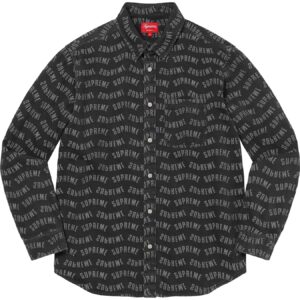 アーチロゴをジャカード織でリピートデザインしたデニム素材のシャツ。