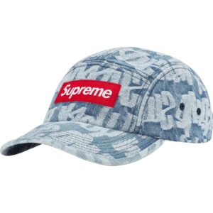 2001年のアーカイブデザイン「ファットティップ」のデニムキャンプキャップ。