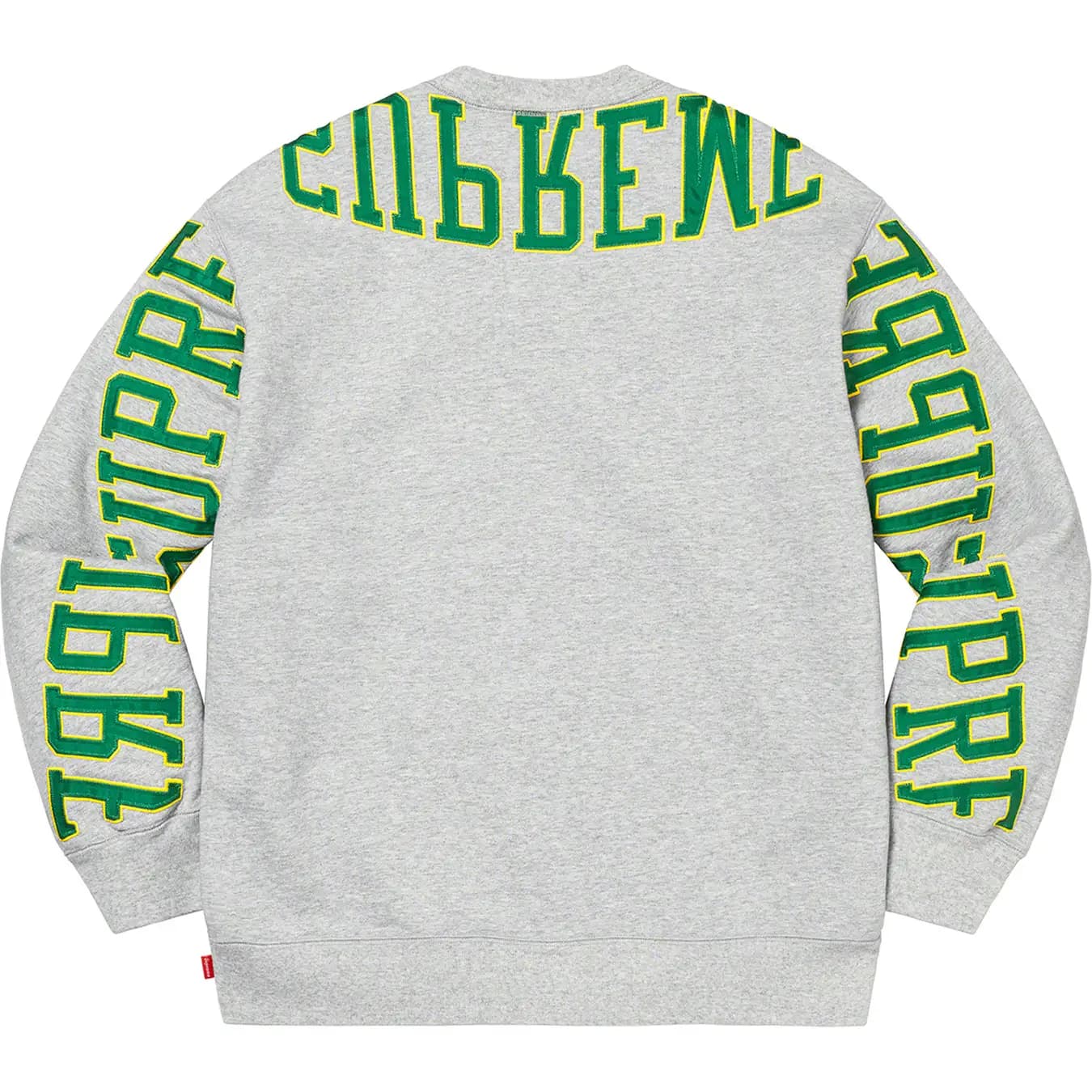アーチロゴのアップリケを両袖やネック下、バックなど至る所に配置したクルーネックシャツ。