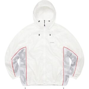 袖下とサイドのメッシュパネル内に3Mリフレクターロゴを仕込んだ、パーテックス素材のウィンドシェルジャケット。