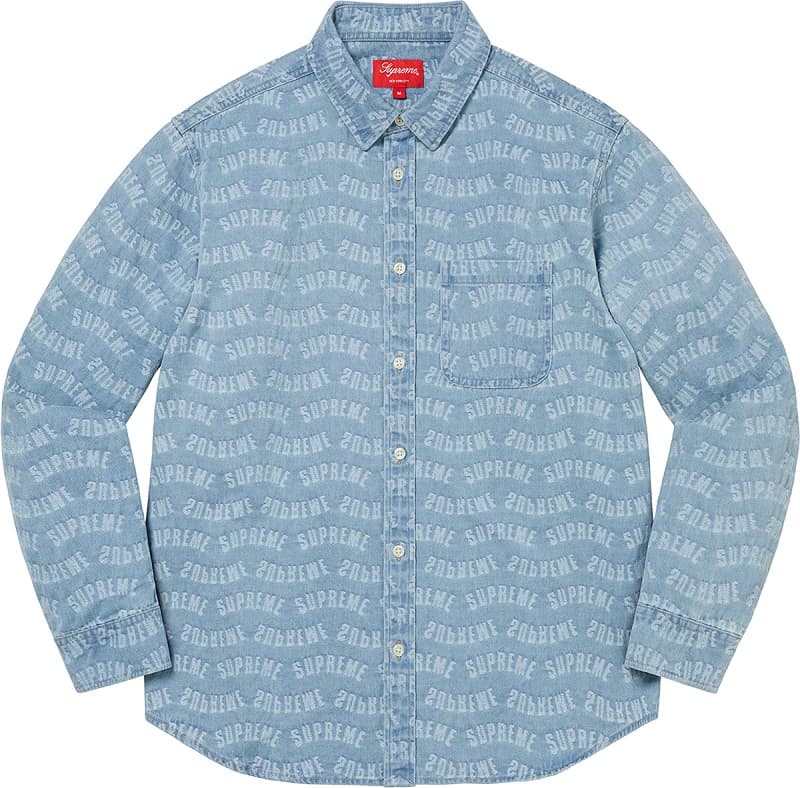 アーチロゴをジャカード織でリピートデザインしたデニム素材のシャツ。