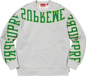アーチロゴのアップリケを両袖やネック下、バックなど至る所に配置したクルーネックシャツ。