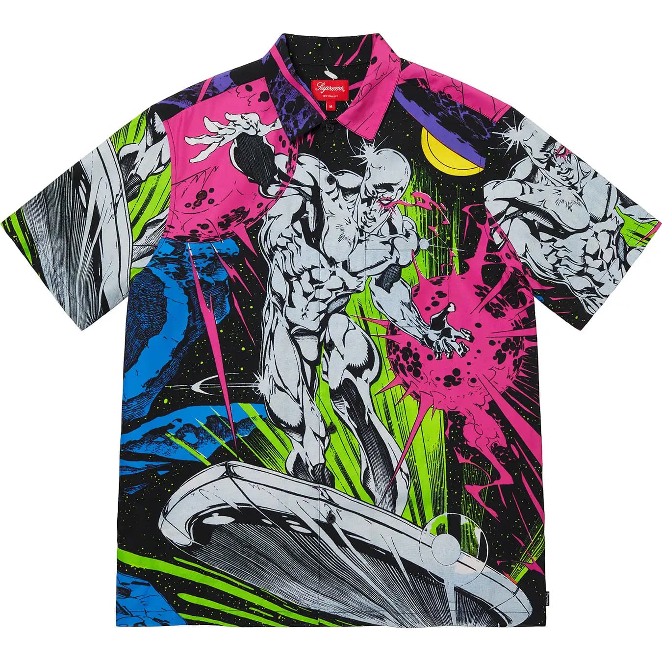 「シルバーサーファー」をモチーフにした、ビスコースレーション素材の半袖シャツ。