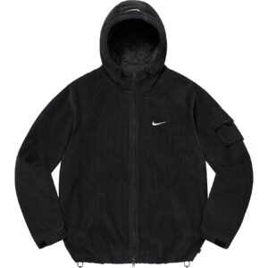 バックにアーチロゴとスウッシュが入った、コーデュロイ素材のジップアップフーデッドジャケット。