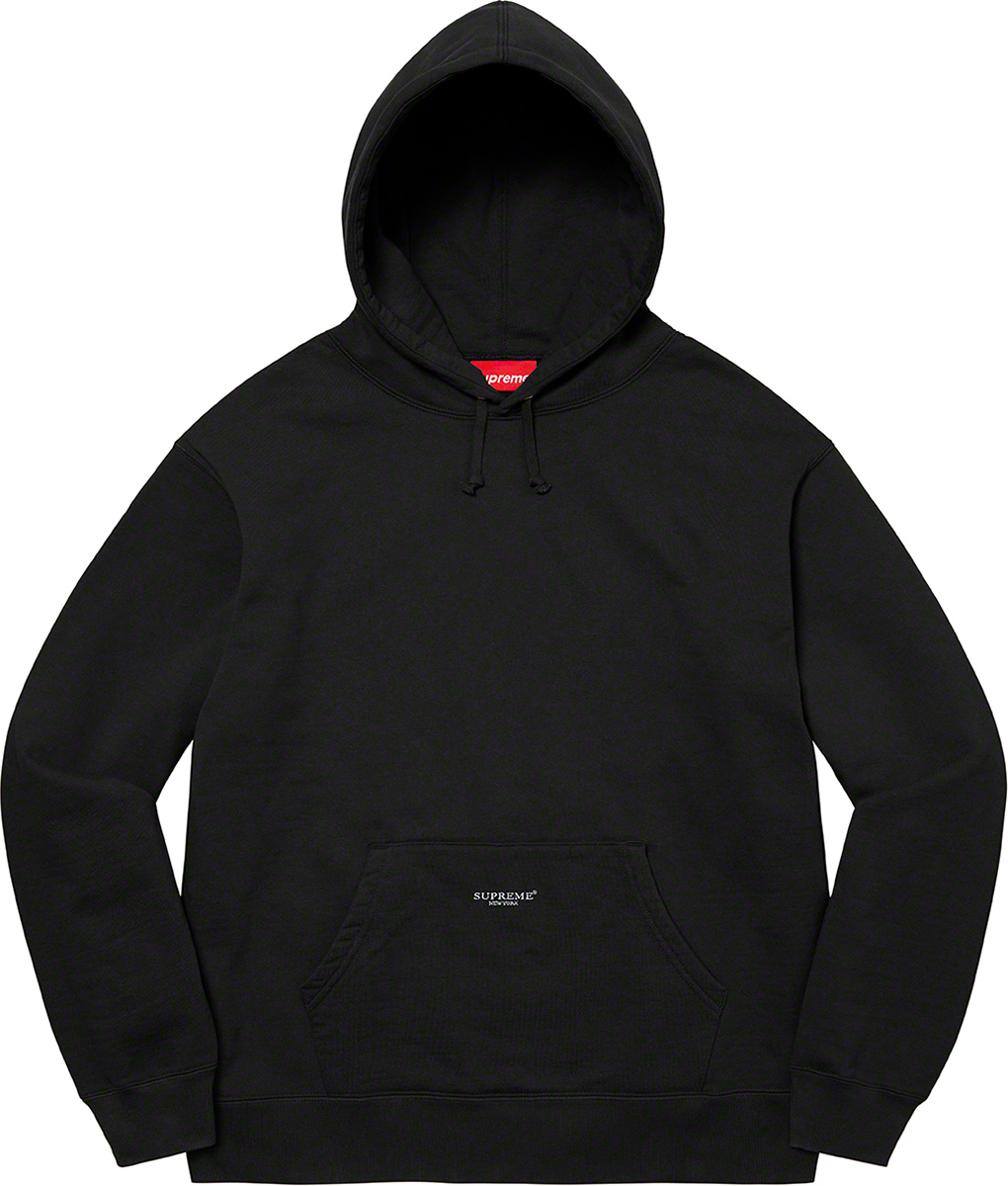 ポケットにシュプリームロゴを小さく刺繍した、コットンフリース素材のフーディ。