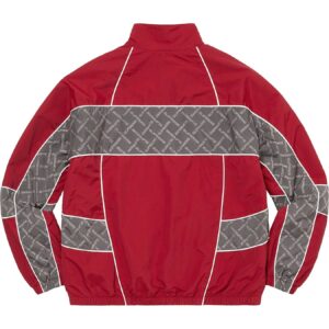 スポーティなパネル切り替えに刺繍のロゴが入った、サプレックス素材のトラックジャケットとパンツ。