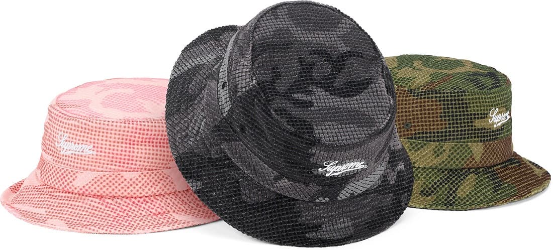 ベルベット素材のカモフラージュキャンプキャップと、クラッシャーハット。