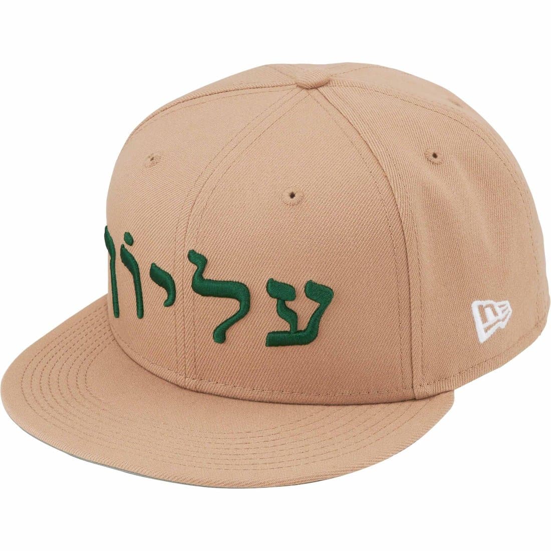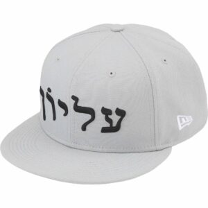 ヘブライ語のシュプリームロゴを刺繍したニューエラキャップ。