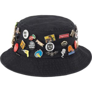 アーカイブピンズを無数に散りばめたデニムクラッシャーハット。
