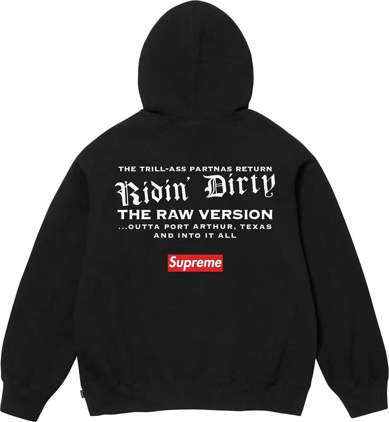 テキサスのラップデュオ「UGK」が1996年に発表したアルバム「Ridin’ Dirty」のアートワークを落とし込んだフーディ。