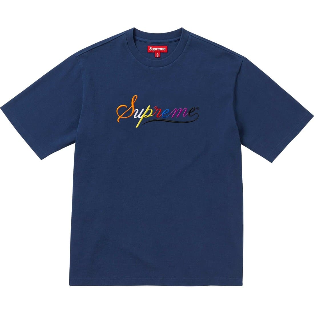 7色のカラフルな刺繍でスクリプトロゴをデザインしたTシャツ。