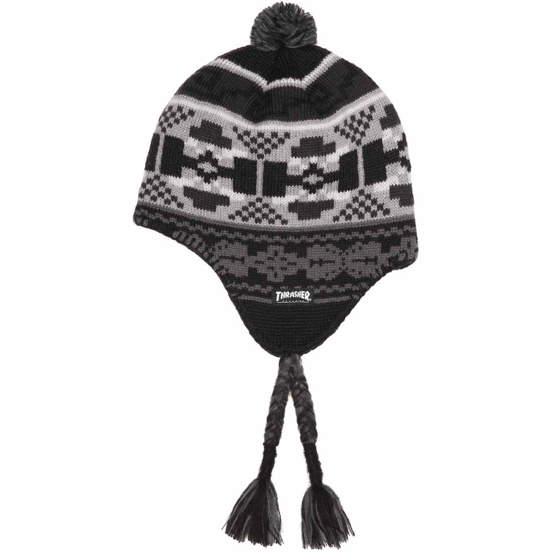 イヤーフラップ付きニット帽。