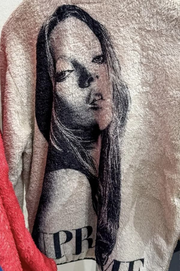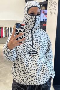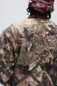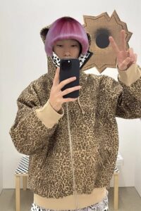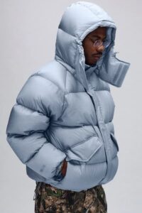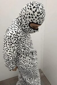 ダウンの柄模様、ドラゴンボールのセルの柄みたいやな