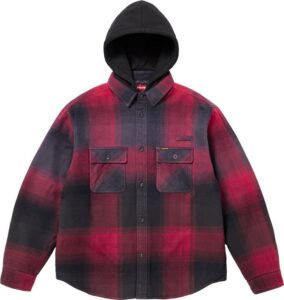 キルティングライナーが付いたフード付きフランネルシャツ。