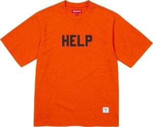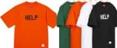 「HELP」のテキストメッセージをプリントした肉厚なコットンスラブジャージ素材のTシャツ。