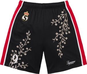 花柄の刺繍でエレガントな雰囲気のポリメッシュ素材のサッカージャージと、サッカーショーツ。