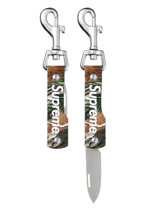 シュプリームの新作アクセコレクションは、マネーバッグ、ウォレット、カードケース、ナイフなど全5アイテムが発表。カラーはいずれも、リアルツリー、ブラック、レッドの三色展開。すべてイタリア製。