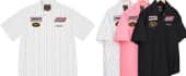 バンソンレザーズ製、モータスポーツ企業のアップリケで装飾したワークシャツ。コットン素材。
