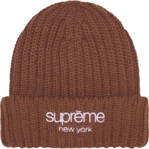 クラッシクロゴを刺繍したリブ編みのニットキャップ。