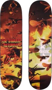 ウータンクランのシングル「トライアンフ」(1997年)のアートワークをプリントしたスケートデッキ。