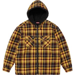 シアリングライナーが温かいコットンフランネル素材のフード付きジップアップシャツ。