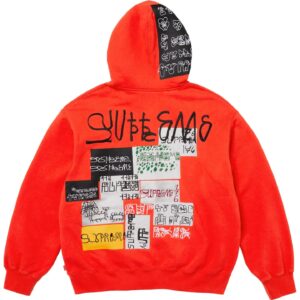 アーティストの「CLINT176」による手書き風のグラフィックやロゴをフロント、バック、フードに刺繍したフーディ。