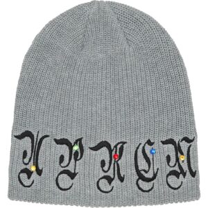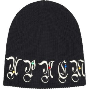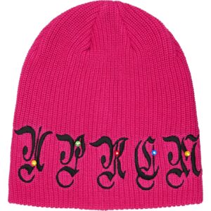 葵産業によるロゴ刺繍の上にラインストーンで装飾したシングルカフビーニー。