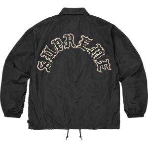 オールドイングリッシュのアーチロゴをバックにデザインした耐水ナイロン素材のコーチジャケット。