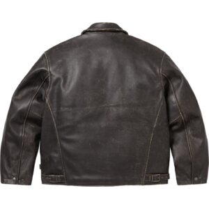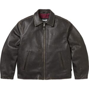ビンテージ加工を施したカウハイドレザーのショット製レーサージャケット。チェストのロゴは型押し、アメリカ製。