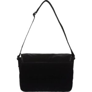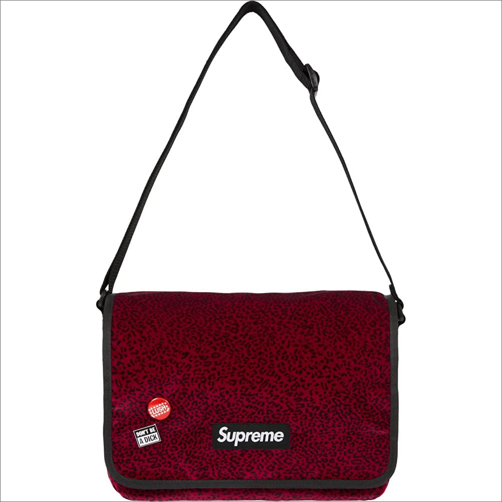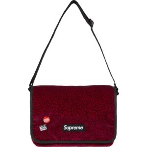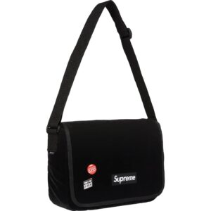 ベルベットフロッキング加工を施したナイロン素材のメッセンジャーバック5L(約36cm 21cm 9cm)ピンズとピンバッジ付き。