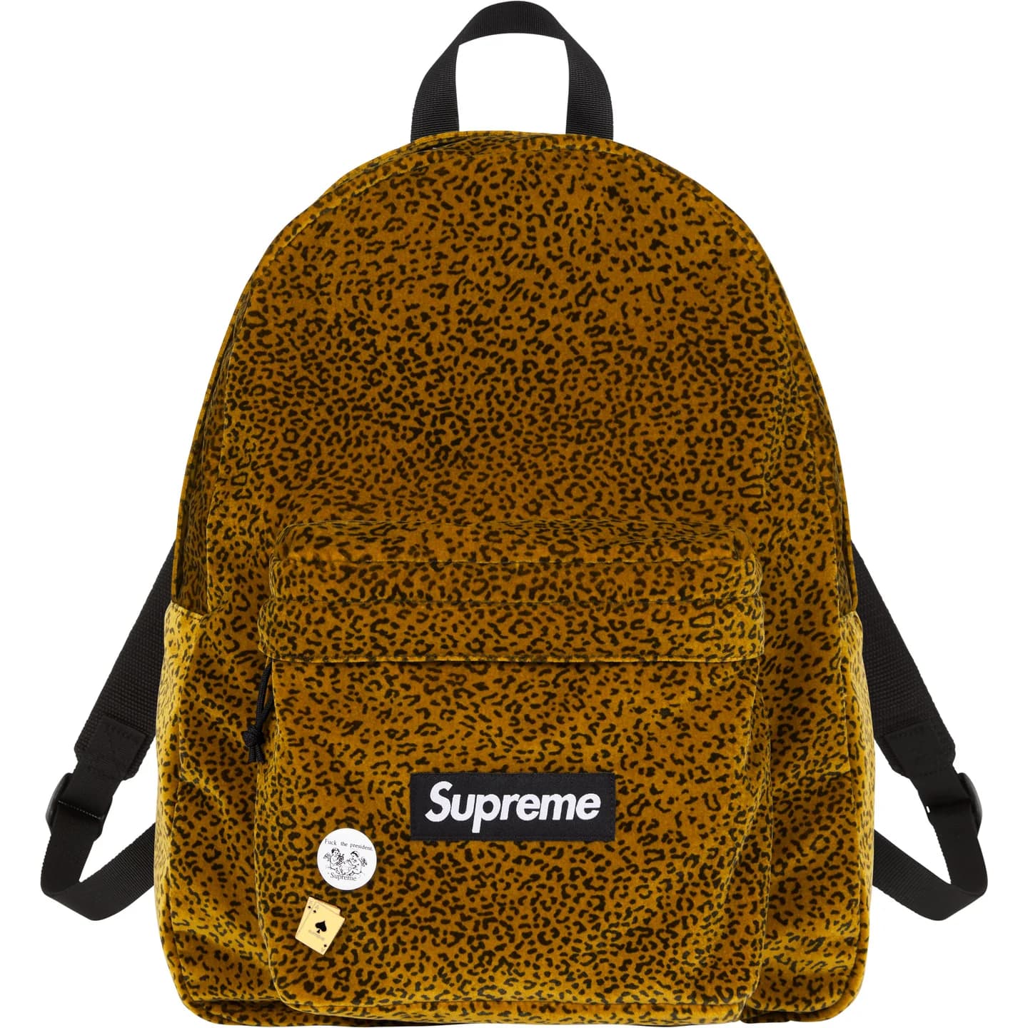 ベルベットフロッキング加工を施したナイロン素材のバックパック25L(約41cm 36cm 21cm)ピンズとピンバッジ付き。