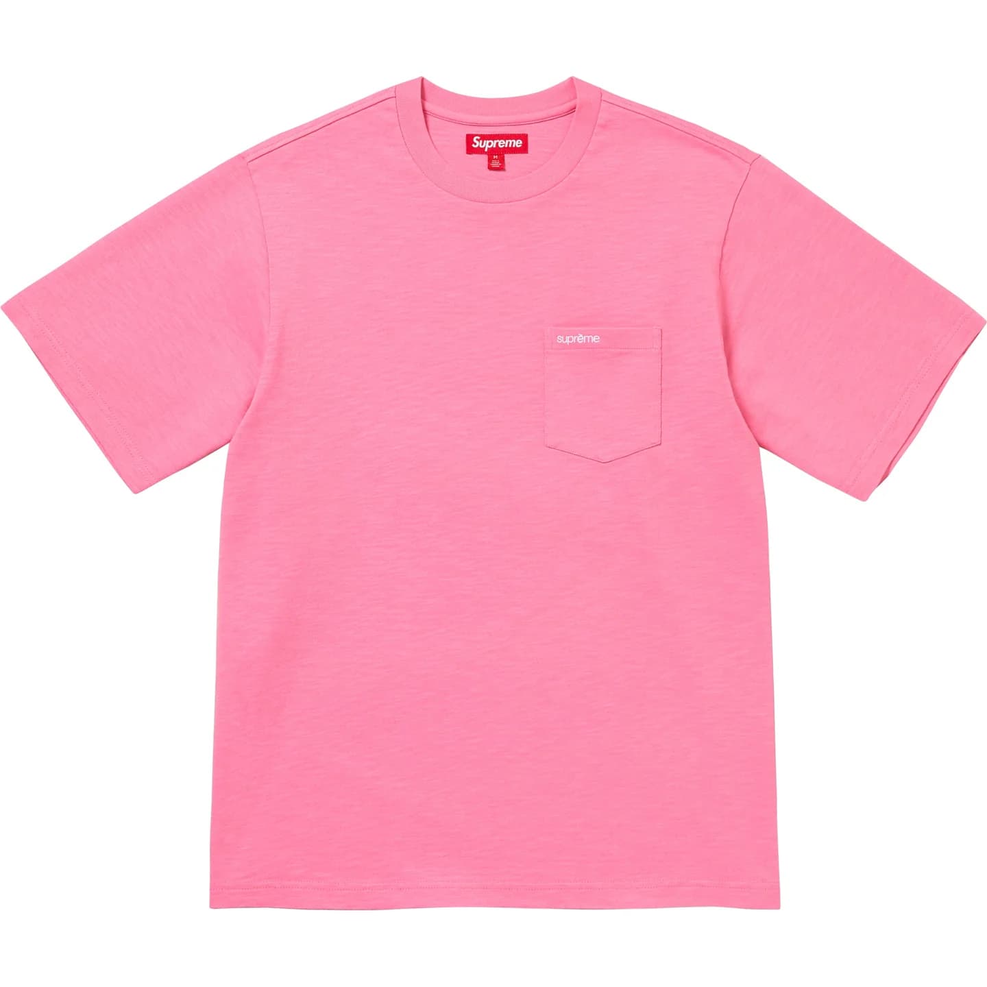 定番のコットンスラブジャージ素材のポケットTシャツ。ロゴは刺繍。