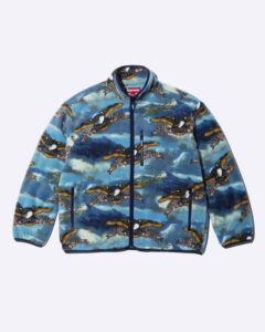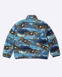 イーグルロゴをリピートデザインした総柄のフリースジャケット。