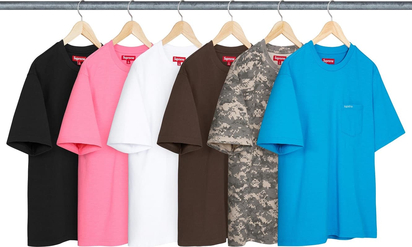 定番のコットンスラブジャージ素材のポケットTシャツ。ロゴは刺繍。