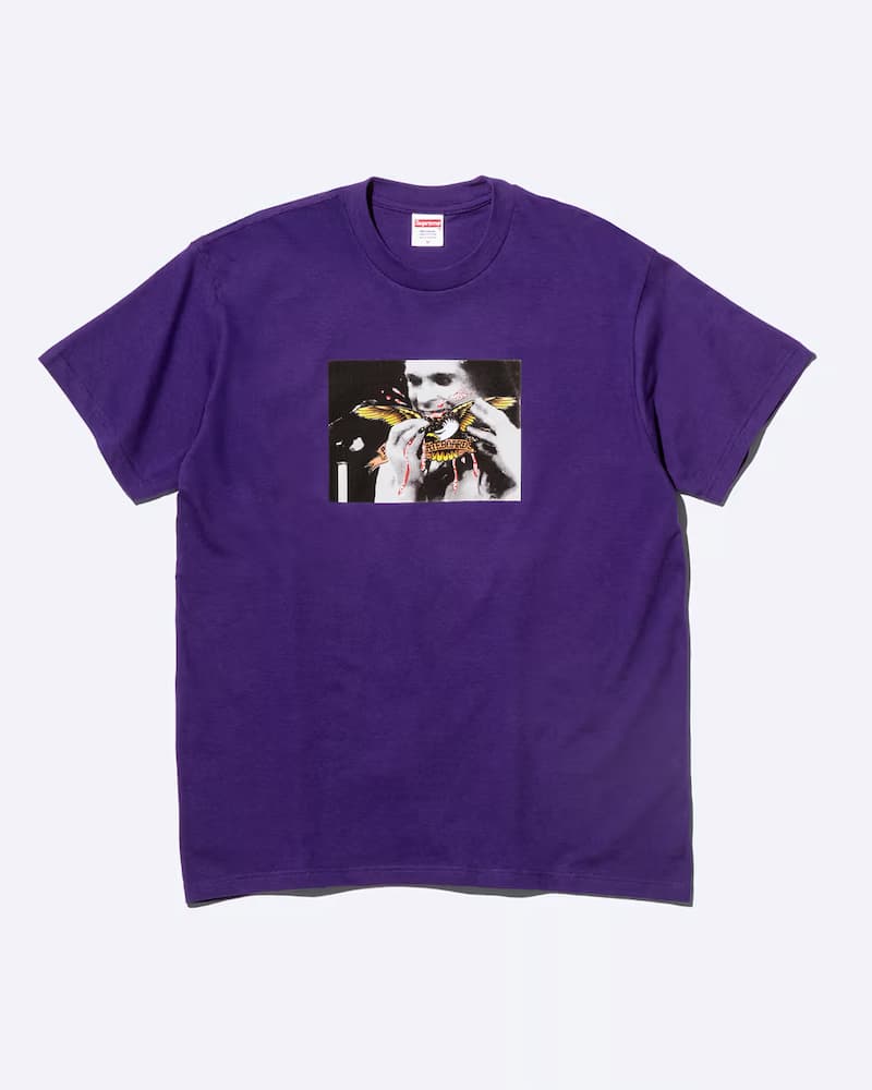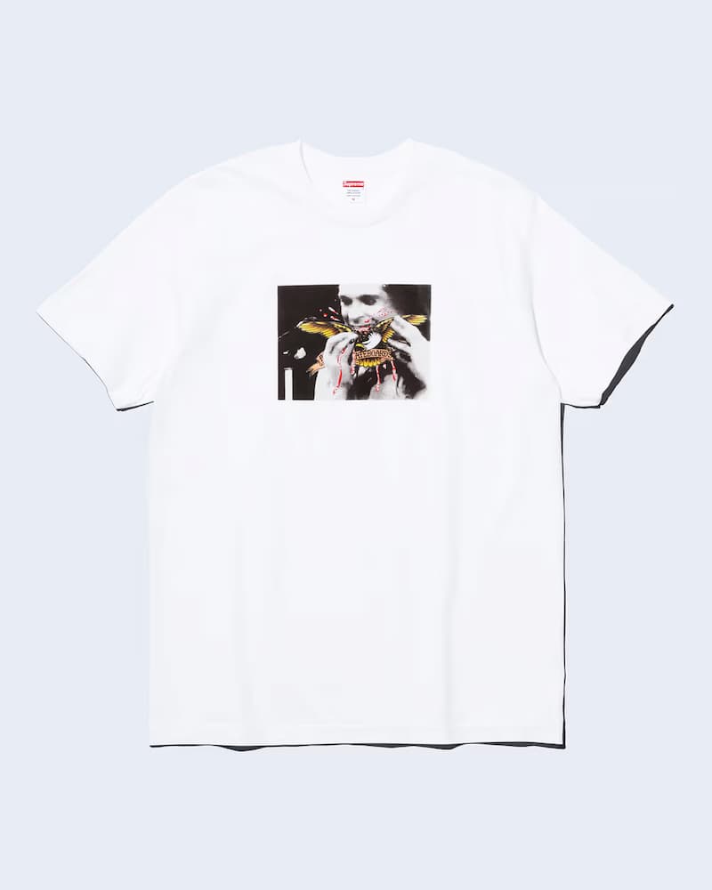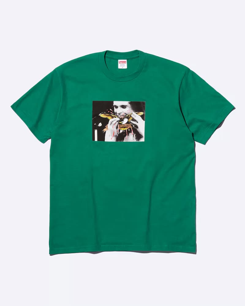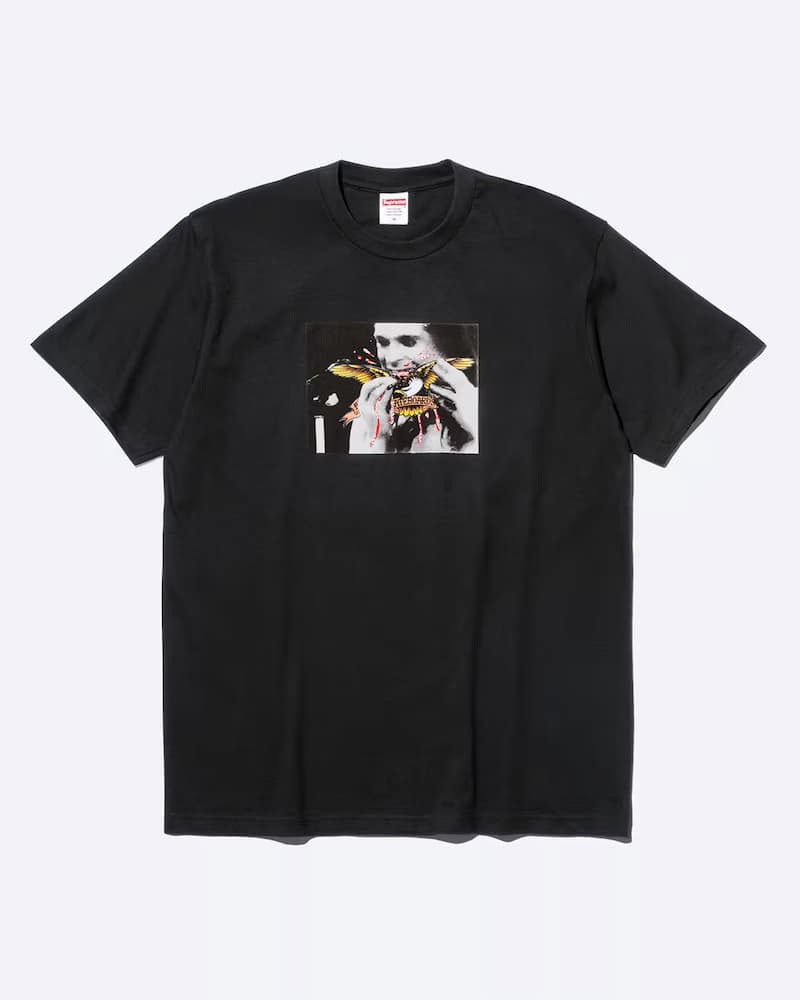 「オジーオズボーン」がコウモリを喰いちぎるシーンをサンプリングしたTシャツ。