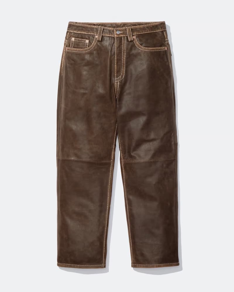 上質なレザーで仕立てたルーズフィットシルエットのレザーパンツ。