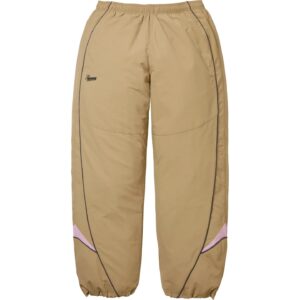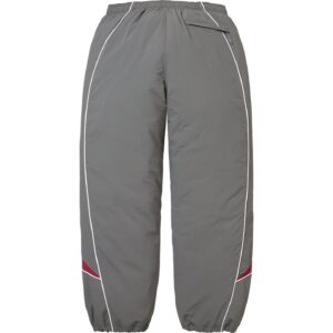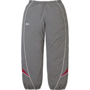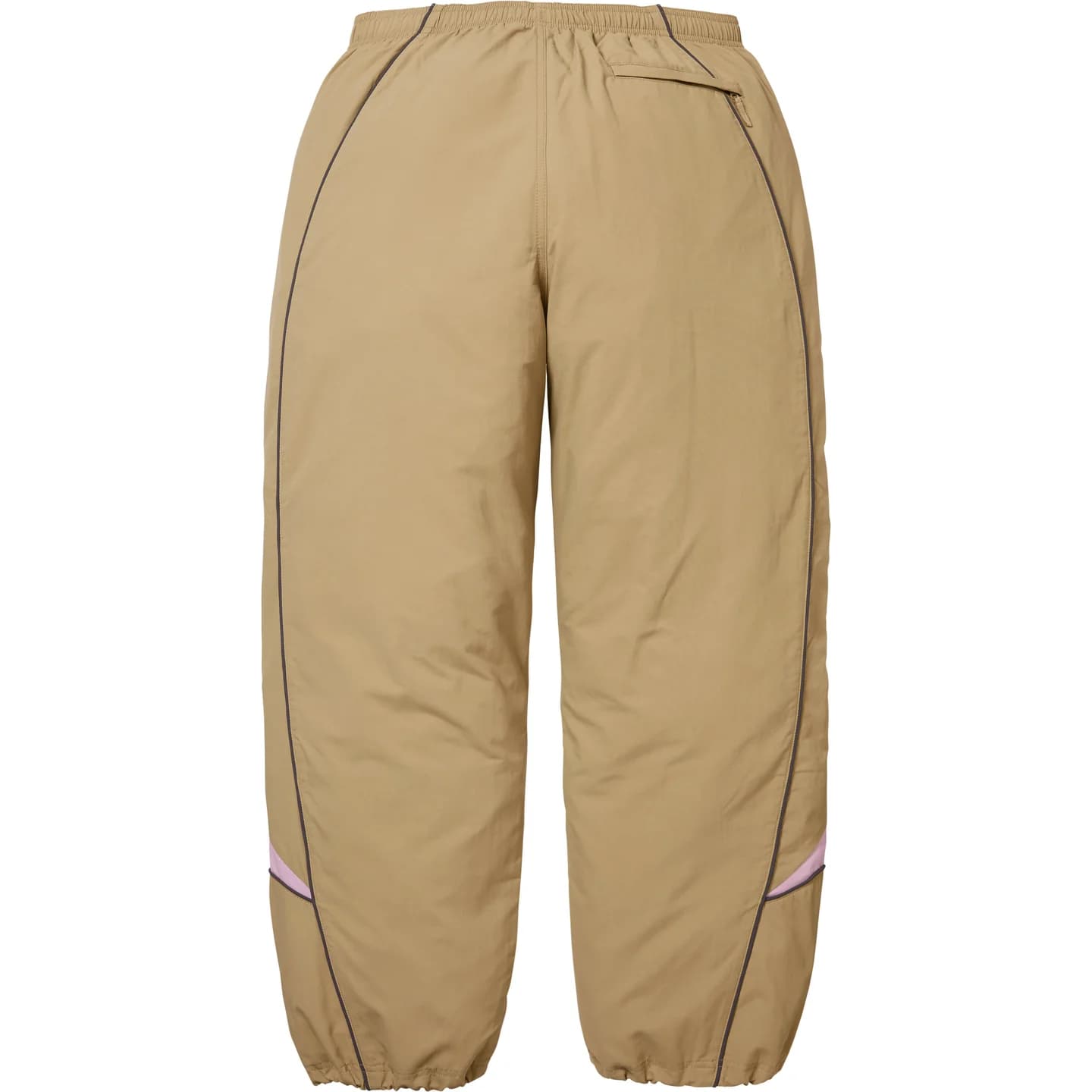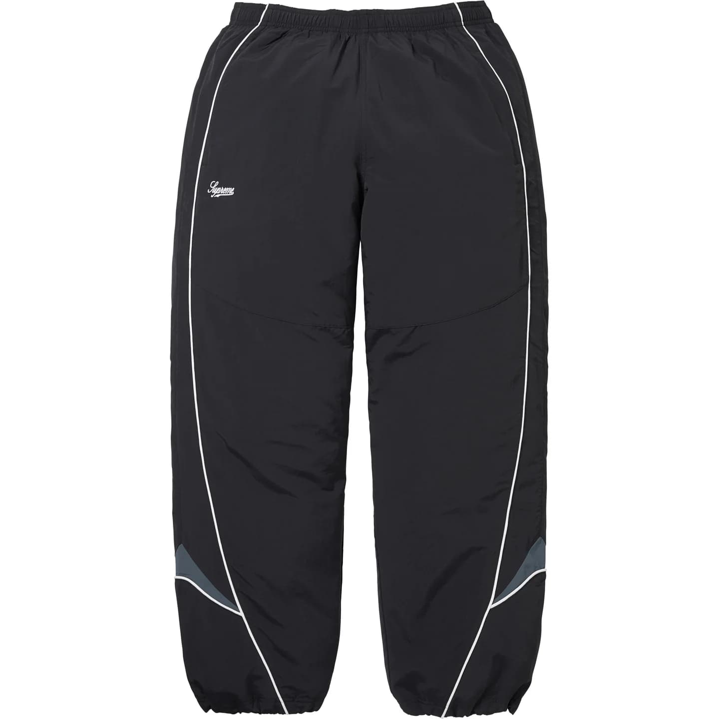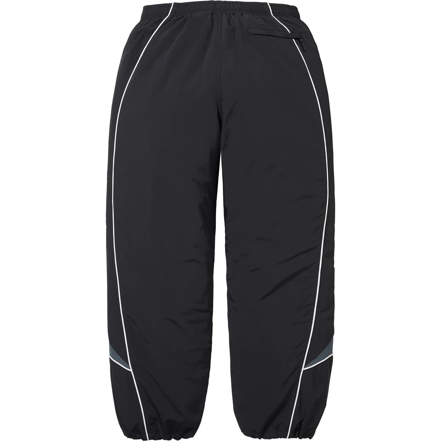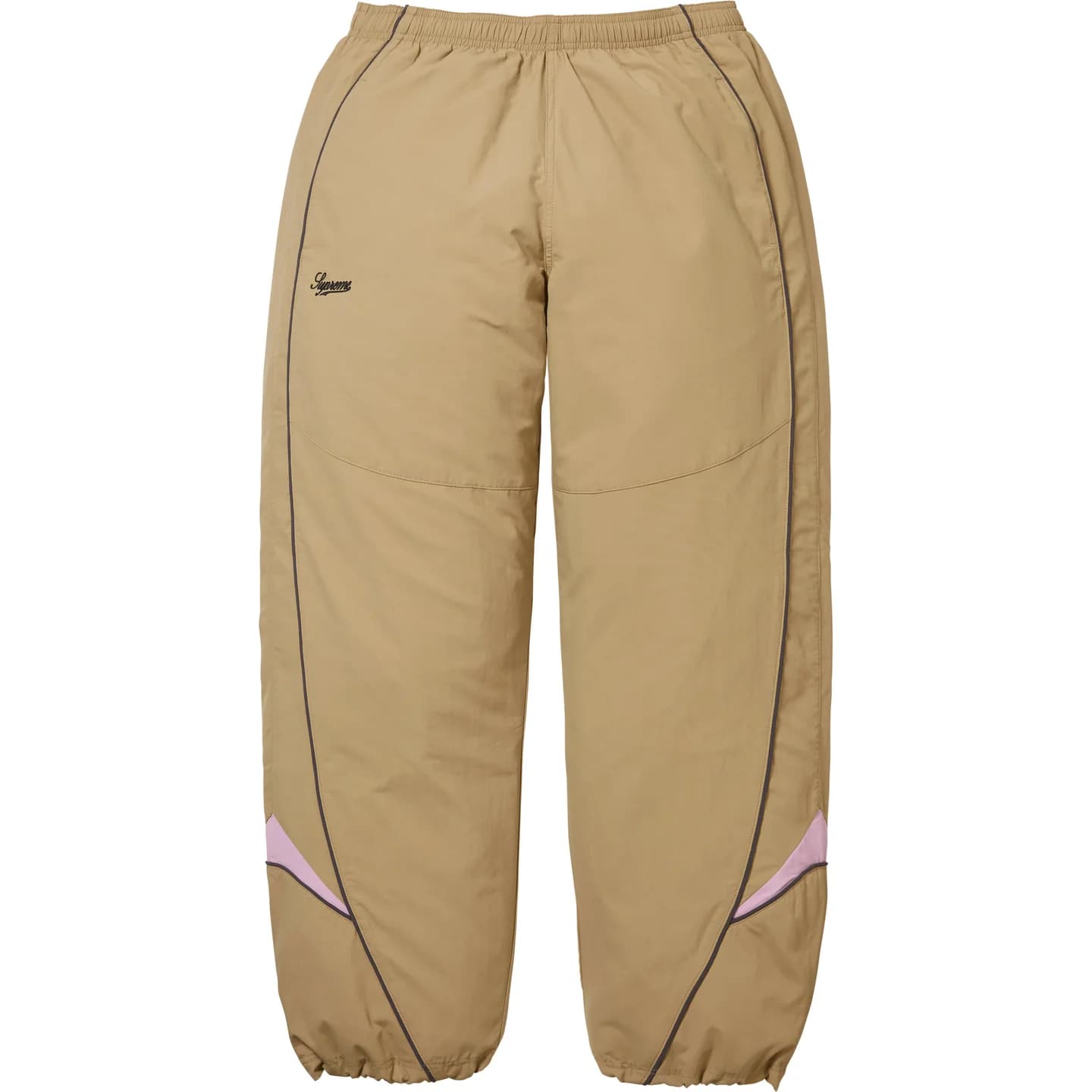 ボディーと対照的なカラーのパインピングラインがアクセントの耐水サプレックスナイロン素材のトラックパンツ。