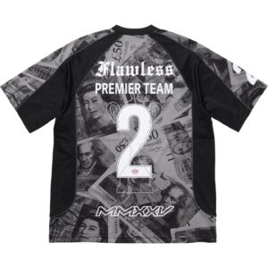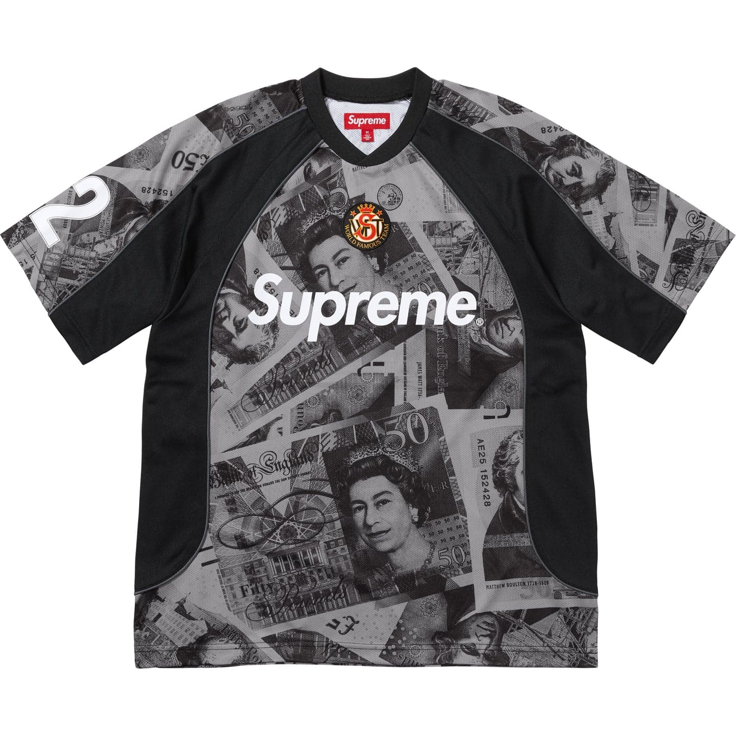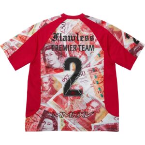 イギリスのポンド紙幣のデザインを総柄で落とし込んだポリエステル素材のサッカージャージ。